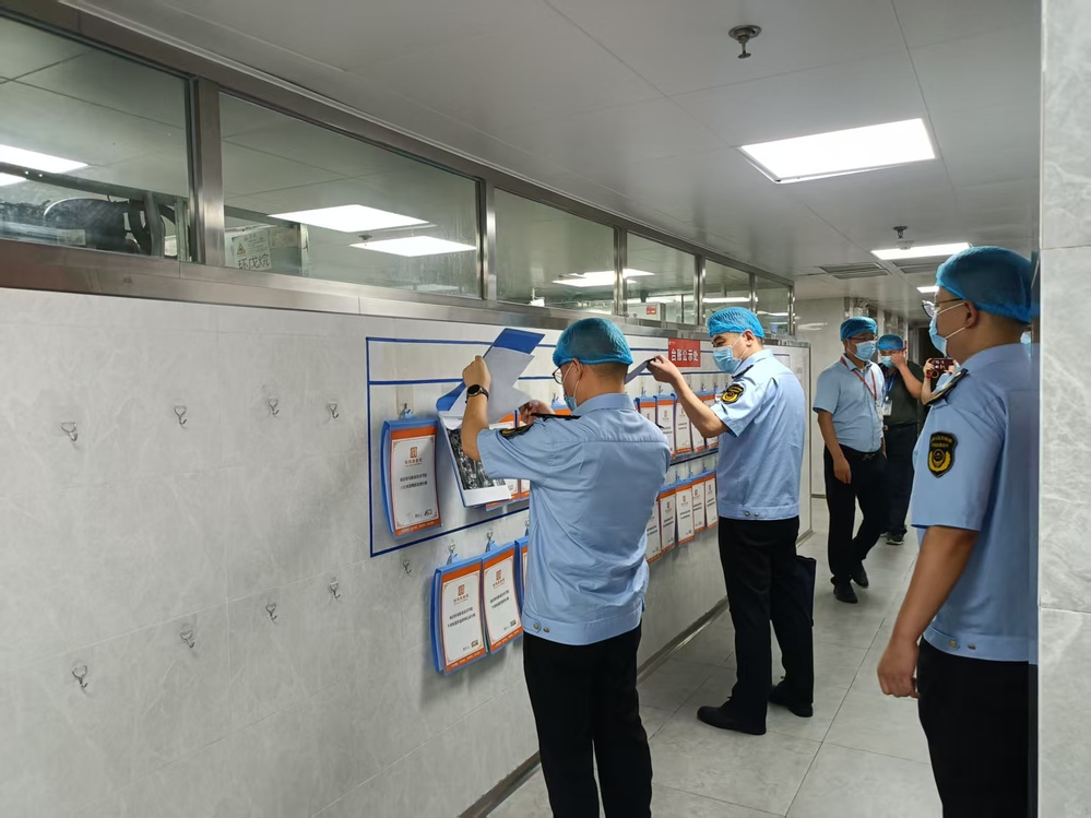 为确保秋季开学师生用餐安全,保障校园生活秩序。9月2日下午,高淳区市场监督管理局食品监管科科长孔春才与开发区分局局长凌晓东带队,对学校食堂食品安全进行了专项检查。后勤处副处长孙永玲、干事周涛及食堂现场负责人陪同检查。