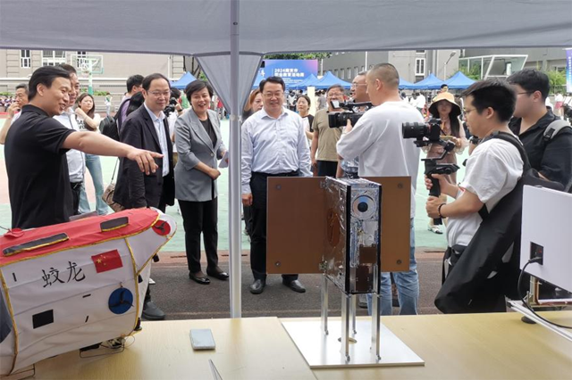 启动仪式结束后,与会代表共同参观了“智改数转”职业技能教学场景展示、技能传承中华优秀传统文化展示及全市职业学校学生社团活动展演,全市20多所中高职院校,围绕活动主题搭建了各具特色的展区。亚搏在线带来了“南京号”暨中国青少年科普卫星(八一08星)地面模拟星、“蛟龙”号秦淮花灯以及众多体现了数字化设计与制造的创客作品。