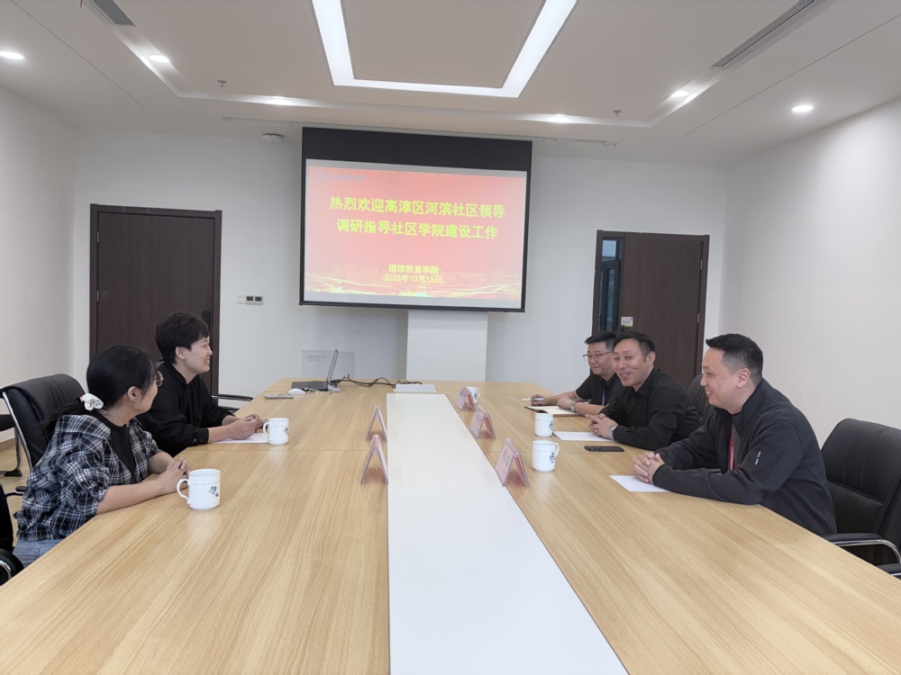 2025年10月14日,继续教育学院院长、培训处处长周云龙一行赴河滨社区就学校社区学院筹建事宜开展交流调研。河滨社区书记吕碧璇全程参与洽谈,并陪同参观社区公共服务空间及老年大学教学现场,双方围绕社区教育资源共享、校社融合发展等议题深入交换意见。