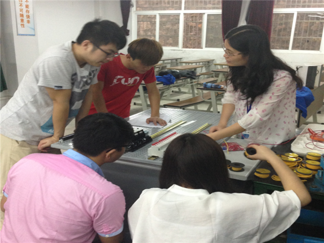 在南京翼马数控机床有限公司,陆晨芳亲自做线、焊线、接线、穿线、调参数、调PLC。参与翼马新产品的开发工作,比如工业机器人和自动化生产线。在南京兴农齿轮制造有限公司,陆晨芳要完成对一台立铣六方机床进行自动化改造。从电气出图,到电气元件采购排版,到电气柜接线,到PLC编程调试,整个流程陆晨芳全部自己独立完成。如今,陆晨芳已先后去过7家与所教专业对口的企业:浙江亚龙科技集团有限公司、西门子数控(南京)有限公司、南京金格尔齿轮箱有限公司、南京众得利自动化机械有限公司、南京翼马数控机床有限公司、浙江天煌科技实业有限公司、南京兴农齿轮制造有限公司。在企业的日子里,无论是机器的调试员,还是参与新产品的设计开发,陆晨芳总是铆足了劲,拼命尝试那些在日常教学中只能看到却无法真正操作的机器与项目。身边老师每次问到陆晨芳别的老师休息了都想着出去旅旅游放松下你怎么那么爱跑企业,她总是笑着说我就是想多会点好让学生也能多学点。在她的职业信仰里高职教师的使命远不仅仅只是把书本上的理论知识告诉学生,而是要让学生在实际的操作中了解行业的发展趋势。
