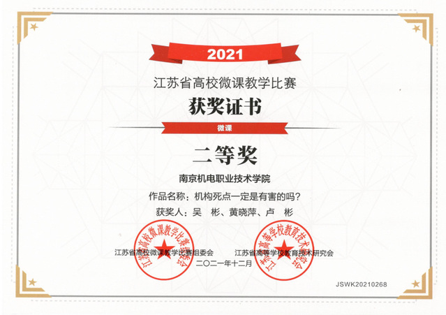 喜报:微课堂,大收获--机械系《机械创新设计》课程获2021年江苏省高校微课教学比赛二等奖