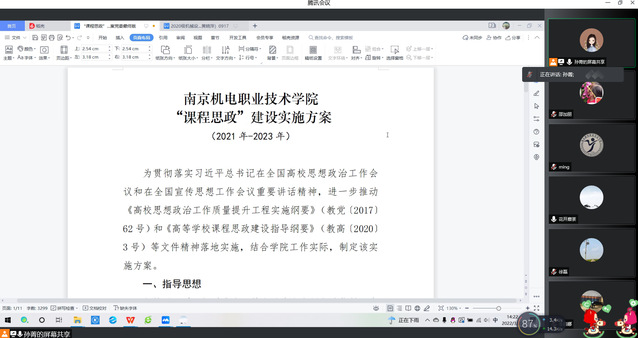 为贯彻落实习近平总书记在全国高校思想政治工作会议和在全国宣传思想工作会议重要讲话精神,进一步推动《高校思想政治工作质量提升工程实施纲要》和《高等学校课程思政建设指导纲要》等文件精神落地实施,结合学院工作实际,学院制定了《亚搏在线“课程思政”建设实施方案》。2022年3月22日下午,机械设计与制造教研室在腾讯会议线上平台对学院的文件进行了学习,并对本专业的所有课程融入思政进行了研讨,会议由专业负责人黄晓萍主持。