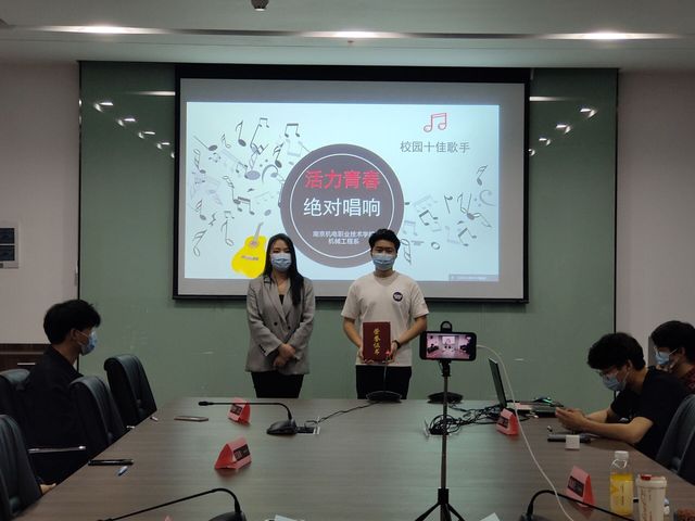 本次比赛的评委由机械工程系学生会副主席蔡加鑫与茅旭升、外联部部长衡爽爽、文体部部长刘梦凡、校社团礼仪社社长陈璐瑜、吉他社社长和音乐社社长担任。应疫情防控要求,系部各班同学在腾讯会议线上观看直播。