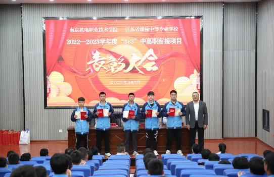 交流前,双方在建筑工程系报告厅举行了2022-2023学年度“3+3”中高职衔接项目表彰大会。会上,亚搏在线教务处副处长杨春雷宣读《亚搏在线、江苏省赣榆中等专业学校关于2022-2023学年度江苏省现代职教体系3+3项目“优秀学生”的表彰决定》。
