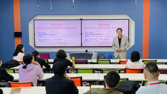 最后,周教授还为教师们总结了在面对智能制造汹涌而来的大环境下,教师如何有效提升的五点建议,分别是强基纳新、竞赛引领、创新驱动、教改发力、科研硬核。会后,老师们都表示受益匪浅,通过此次报告,为今后数控技术及相关专业的发展、调整、教师的提升、课程思政建设和教学创新改革提供了新方向、新思路。