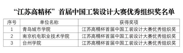 学院获得“江苏高精杯”首届中国工装设计大赛优秀组织奖。