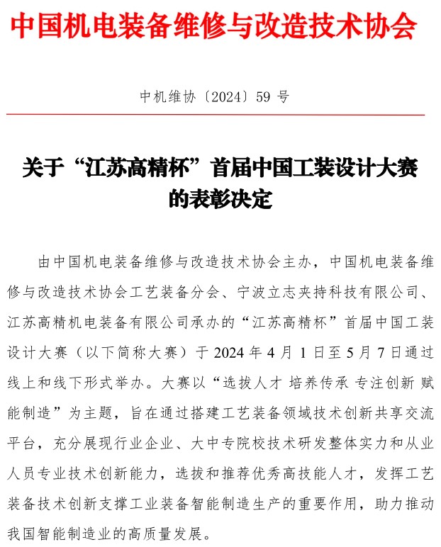近日,由中国机电装备维修与改造技术协会主办,中机维工艺装备分会承办的“江苏高精杯”首届中国工装设计大赛历时三个月圆满结束。本次大赛行业企业和职业院校同台竞技,我系师生组队共参赛10个项目,表现突出,成绩斐然,获奖率达100%。