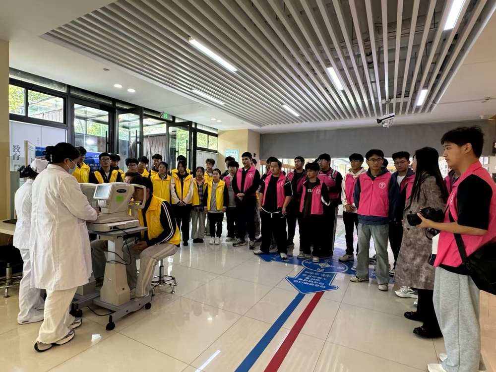 随后,同学们亲身体验了各种高精密检查仪器。通过使用眼压检测仪、视力测试仪等先进设备,同学们更加直观地感受到了现代医疗技术的神奇与精准。在体验过程中,医护人员耐心地为同学们介绍仪器的使用方法和检测目的,让同学们在实践中增长了知识。