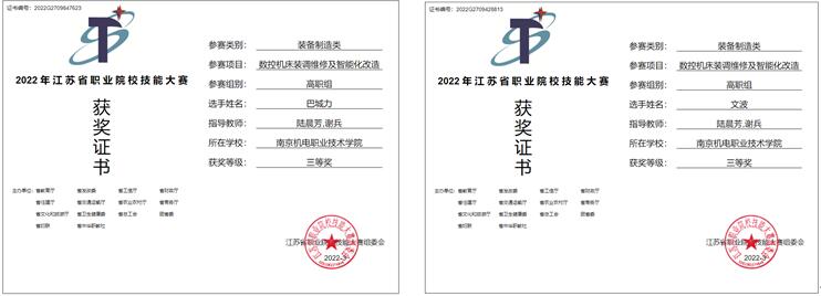 “以赛促学”成为学生快速成长与提升的关键路径,学生在知识储备、专业技能、团队协作和创新思维等多方面实现质的飞跃。近年来,机械制造及自动化专业学生积极参加各类竞赛,共获得国家级奖项12项,省级奖项60项,校级奖项3项,共计75项。其中获得江苏省大学生职业规划大赛特等奖1项;全国三维数字化创新设计大赛江苏省选拔赛特等奖1项;江苏省职业院校技能竞赛获得二等奖2项,三等奖2项等。