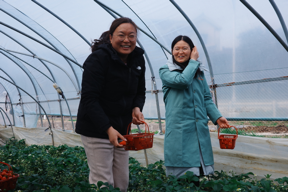 在草莓园工作人员的引导下,女老师们开始了采摘之旅。大家穿梭于草莓田间,一边品尝着新鲜的草莓,一边交流着生活中的趣事,欢声笑语回荡在草莓园的每一个角落。采摘过程中,大家不仅享受了劳动的乐趣,还增进了彼此之间的感情,缓解了日常工作的压力。