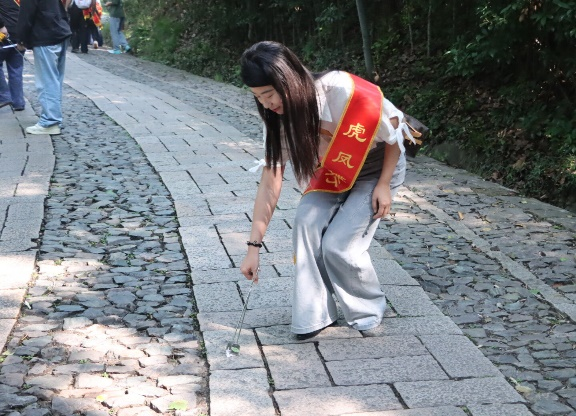 活动中,志愿者们不畏骄阳,手持垃圾袋和捡拾工具,沿着紫金山的小道,认真捡拾沿途的垃圾。他们不怕脏、不怕累,不放过任何一个角落,用实际行动守护这片美丽的自然环境。