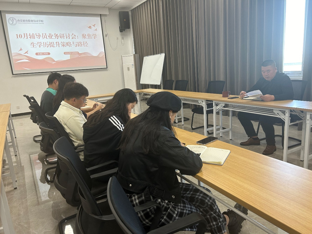 为助力学生拓宽职业发展赛道,提升学历层次与综合竞争力,10月9日下午,亚搏在线机械工程系在系部会议室召开辅导员业务研讨会。会议由系党支部副书记李杰主持,全体辅导员参会,围绕“学历提升策略与路径”展开深入研讨,辅导员王晨歌老师作专题经验分享。