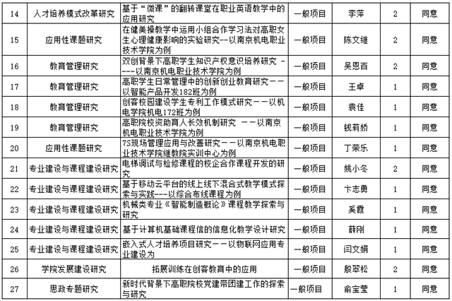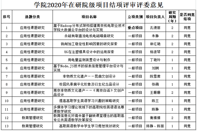 根据《关于2020年上半年院级在研科研项目结项的通知》、《亚搏在线科研工作管理办法》机电学院〔2012〕19号、《亚搏在线科研项目管理办法》机电学院〔2012〕20号文件精神,经科研及校企合作处审查,院学术委员会鉴定审核,批准我院2020年上半年学院在研科研项目27项通过结项鉴定。现将结项鉴定结果予以公示。