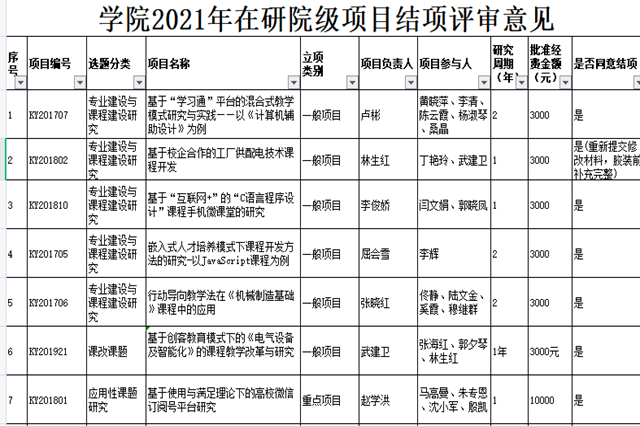 根据《关于2021年上半年院级在研科研项目结项的通知》、《亚搏在线科研工作管理办法》机电学院[2012]19号、《亚搏在线科研项目管理办法》机电学院[2012]20号文件精神,经科研及校企合作处审查,院专家组评审,批准我院2021年上半年学院在研科研项目26项通过结项鉴定。现将结项鉴定结果予以公示。
