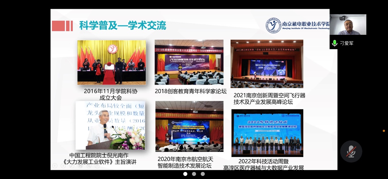 为发挥中国生物工程学会在生物技术领域的优势,积极对接国家级学会高端资源,7月21日下午,我校党委委员、副院长、科协副主席刁爱军,科研及校企合作处处长、科协秘书长李木香应邀出席中国生物工程学会资源线上对接交流活动。本次交流会由南京市科协企事业科协联络部部长樊忠卫主持。