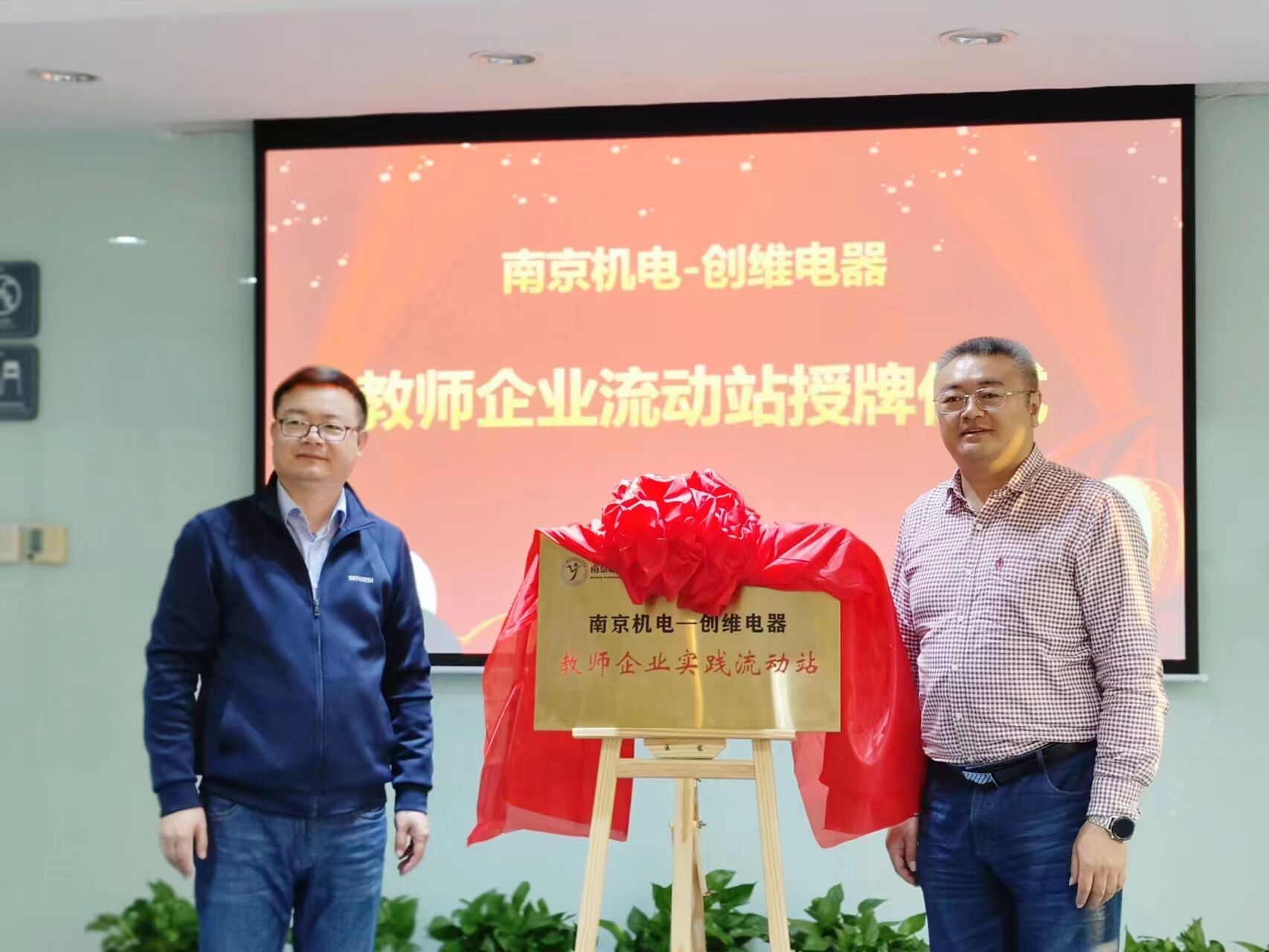 签约及授牌仪式上,刁爱军与张锦旗共同签署了“南京机电-创维电器教师企业实践流动站”校企合作协议,并共同揭牌“南京机电-创维电器教师企业实践流动站”。机械系书记李杰为教师企业实践流动站的企业导师颁发聘书。