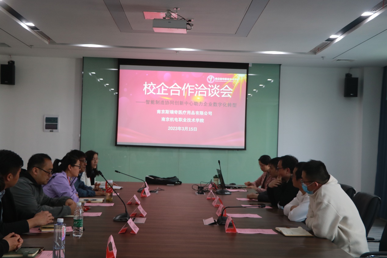 2023年3月15日,学校与南京斯瑞奇医疗用品有限公司在学校育德楼203举行校企合作洽谈会,南京斯瑞奇医疗用品有限公司信息部和设备部领导、科研及校企合作处处长、学院高级督导、自动化工程系主任和罗克韦尔智能制造协同创新中心负责人参加了本次洽谈会。校企双方就企业数字化转型过程中的痛点与技术需求进行深入研讨。