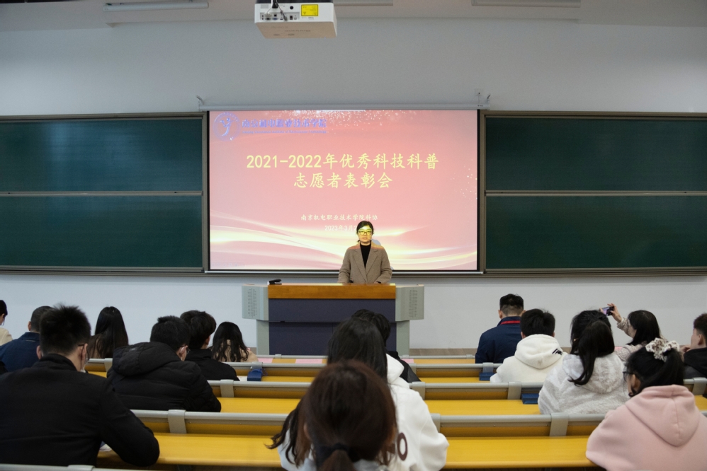 为树立典型,表彰先进,让更多的人参与到志愿者服务活动中来,学校科协于2023年3月21日在善学楼110举办“2021-2022年优秀科技科普志愿者表彰会”。学生工作处处长张宝中、科协秘书长李木香,各系办主任、科技科普志愿者代表60余人参加会议,会议由学校志愿服务支队管理员林巧芬老师主持。