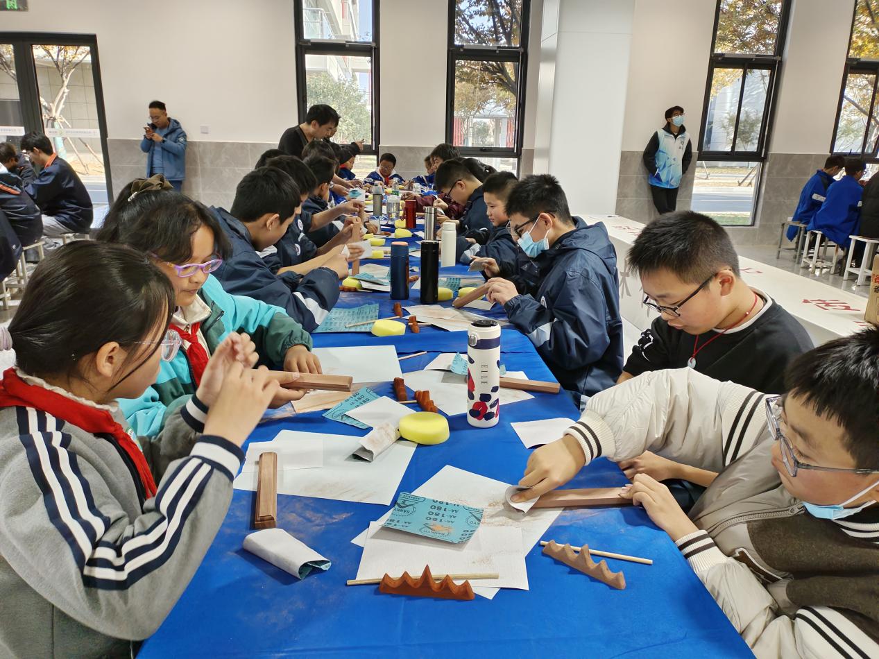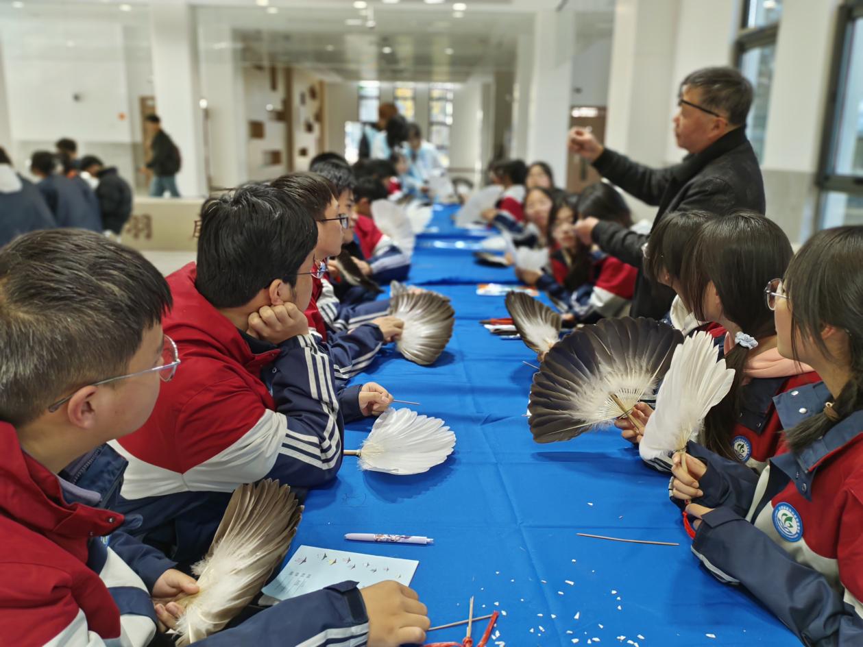 史局长宣布活动开幕后,非遗体验现场“热火朝天”。四位非遗大师以通俗的语言、精湛的技艺向同学们展示荷花灯、板鹞风筝哨口、木制镇纸笔搁、羽毛扇等项目的设计原理和制作过程。同学们认真聆听大师的讲解,在大师的指导下利用桌上的材料和工具完成作品,用心体会着中国古代劳动人民的智慧。亚搏在线的科技志愿者也为中小学生提供必要的帮助。同学们表示,本次活动让他们充分体验了动手实践的乐趣,丰富了他们的课余生活,感受到了中国传统文化的魅力。