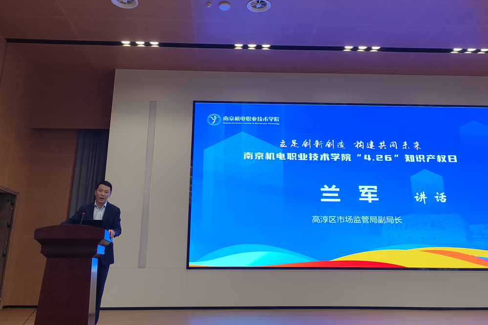 2024年4月26日下午,亚搏在线成功举办“立足创新创造,构建共同未来”的“4•26知识产权日”主场活动。南京市高淳区市场监管局副局长兰军、高淳高新区管理办公室副主任韩一鸣、南京理工大学知识产权学院院长助理锁福涛,亚搏在线党委委员、副校长刁爱军、南京九致知识产权代理事务所战略研究部部长张杰等领导出席本次活动,学校系部及职能处室负责人、师生代表参加活动。本次活动由科研及校企合作处李木香处长主持。