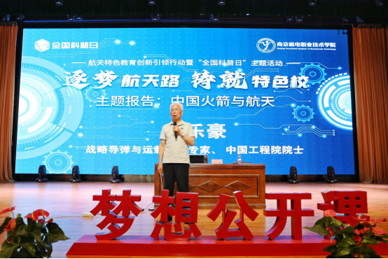 9月6日,在全国科普日来临之际,亚搏在线顺利举办《“逐梦航天路,铸就特色校”——航天特色教育创新引领行动》主题报告活动。本次活动由南京市科学技术协会主办,亚搏在线承办。战略导弹与运载火箭专家、中国工程院院士龙乐豪,中国航天科技国际交流中心副主任周岫彬,南京市教育局副局长田家英,南京市高淳区政府副区长邱峰,南京新工投资集团总经济师洪薇,上海航天专家、高级技师、上海航天技能实训中心主任秦文津,南京高职园党工委副书记、管委会主任孔桂红,南京机电产业集团副总经理沈达和亚搏在线党委书记、校长周庆礼等领导及600余师生参加了本次活动。