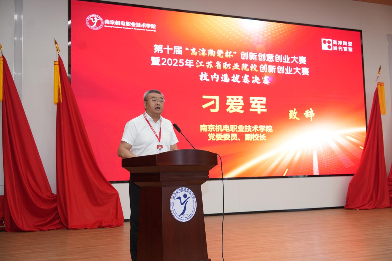 致辞中,学校党委委员、副校长刁爱军指出,本次大赛是国家深入实施创新驱动发展战略和人才强国战略的具体实践,顺应了发展新质生产力、构建现代化产业体系的时代要求,彰显了高校创新策源地的关键作用,打通了科研成果转化的高效通道,搭建了产学研用融合的重要平台,为高质量发展注入澎湃动能。他强调,青年是创新创造的生力军,希望我校师生珍惜创新火花,勇于探索,敢于实践,努力将奇思妙想转化为推动产业进步的强大动能,在2025年江苏省职业院校创新创业大赛中再攀高峰、续写辉煌!