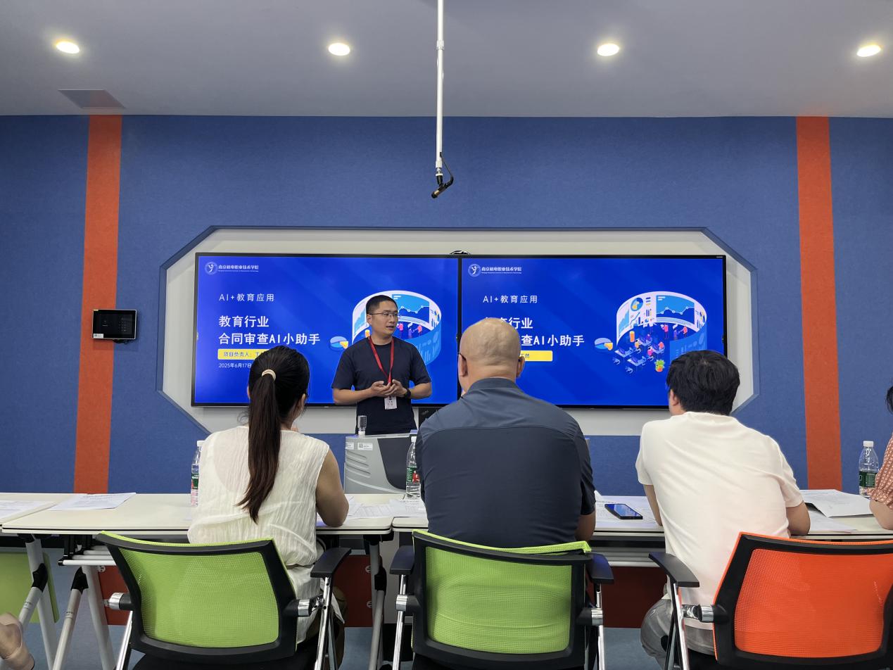 在创意设计组,电子工程系教师卢克团队的《安聆校园-校园声学安全物联网系统》重构校园安全生态,系统通过“非视觉化”监控模式,在尊重学生隐私权的基础上,为隐蔽空间提供全天候守护,降低暴力伤害的严重性。信息工程系学生姚章甫团队的《非遗板鹞风筝包装设计》以“非遗传承,匠心永续”为核心,将中式美学与板鹞风筝文化深度融合,打造兼具文化厚度与视觉感染力的沉浸式体验载体。创意设计“AI+教育”组中,机关一支部教师丁然团队的《教育行业合同审查AI小助手》基于本地部署的 deepseek 和 dify 平台,采用本地化部署方式,所有数据处理与存储均在本地完成,从根源上杜绝了数据外泄的可能性,严格满足教育行业对数据保密的高要求,为学校合同信息安全筑牢坚实防线。