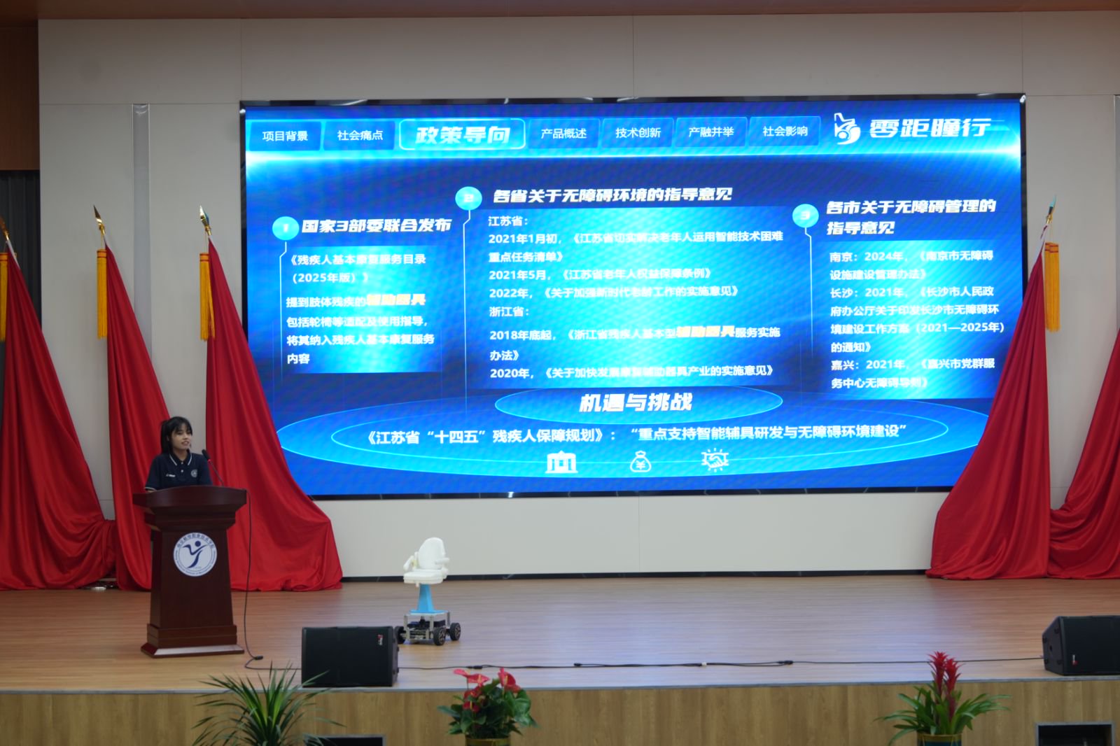 本次大赛增设了南京高等职业教育创新创业园入驻学校优秀作品展演环节。来自南京理工大学紫金学院、南京航空航天大学金城学院的项目团队带来《“红声译语”基于神经解码的聋哑人士手语交互设备》《AI慧眼识圾——可重构式全场景智能垃圾分类系统》等5件优秀作品。不同学校的师生在互学互鉴中汲取智慧,拓宽视野,成为校际双创生态中知识共生的生动注脚。