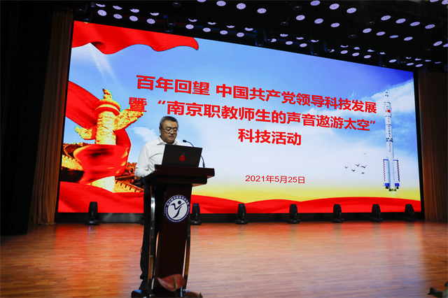 2021年5月25日,百年回望:中国共产党领导科技发展暨“南京职教师生的声音遨游太空”科技活动在亚搏在线报告厅举行。出席本次活动的嘉宾有中国工程院院士贲德,中国人民解放军航天员大队第一任大队长申行运,中国航天科技国际交流中心副主任周岫彬,南京市教育局副局长潘东标,南京市职业技术教育学会会长、市职社处处长黄子亮,南京市职业教育研究室主任章宏,南京新工集团总经济师洪薇,南京各职业学校的书记及校长们,南京航空航天大学航天学院领导,南京市第二十九中幕府山初级中学领导,南京高等职业教育创新创业园领导,学校党委书记、院长周庆礼,党委副书记、纪委书记、副院长陈赵,副院长刁爱军,以及企业领导。活动采用线上线下相结合的方式进行,南京职教师生共同感受了本次活动的盛况。