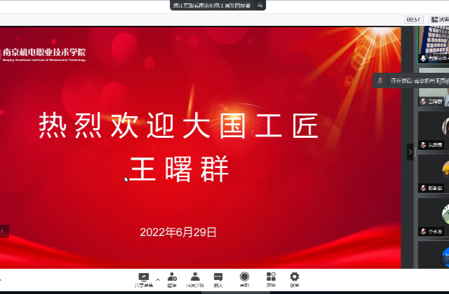 为了更好地培养新一代航天队伍的高技术人才,大力弘扬大国工匠精神,引领和促进技能型人才培养,提升人才培养质量,蓝岛创客空间邀请大国工匠王曙群于6月29日晚为我校师生开展了线上授课。第五期“双创教育试点班暨大国工匠班”全体学生和“金陵号”暨中国青少年科普卫星(八一08星)工程师生团队参加了本次授课。因疫情影响,本次授课以线上授课的形式开展。