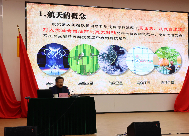 他首先带领大家回顾了人类航天事业的起源、发展历程以及关键里程碑事件,展现了航天事业从无到有、从小到大的壮丽图景。接着,他详细介绍了新时代中国航天事业取得的辉煌成就,如载人航天、月球探测、北斗系统及天宫空间站等,彰显了我国航天事业的蓬勃发展和国际地位的提升。他强调航天事业的高风险、高投入、国际化合作和技术创新驱动特点,及其对国家安全与国际地位的重要性。通过讲述航天先驱与当代杰出人物的故事,方向明书记弘扬了勇于探索、挑战极限、无私奉献和团队合作的航天精神。他鼓励大家在新时代背景下继续发扬航天精神,推动航天事业高质量发展,并激励师生勇于追梦、担当责任,为航天事业贡献力量。