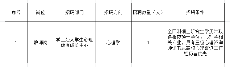 为更好地选拔优秀适岗人才,充实我校师资队伍,优化人员结构,亚搏在线(公办高职院,学校网址: /)面向社会招聘学工处大学生健康成长中心心理学岗位教师。现将有关事项公告如下: