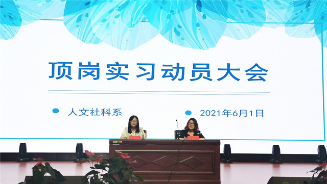 2021年6月1日,中午12:30,人文社科系于报告厅召开2022届顶岗实习学生动员大会,人文社科系主任曹安林、党支部副书记叶绘、2022届人文社科系全体学生及辅导人员参与此次会议。大会遵循亚搏在线《顶岗实习管理办法》的要求,旨在保障2022届毕业生顶岗实习工作的顺利进行。