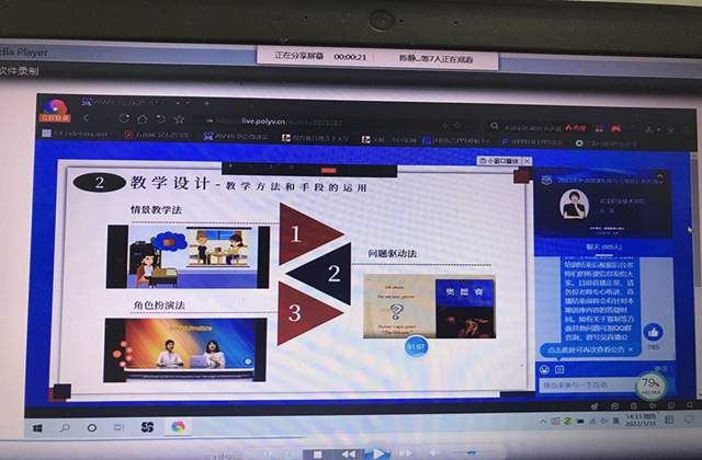 4月5日上午,人文社科系英语教研室全体教师相聚云端,积极探讨了第七届冠盛杯”创新创意创业大赛暨第八届中国国际“互联网+”大学生创新创业大赛校内选拔赛备赛经验,之后认真学习了外语微课教学制作与应用的培训讲座,会议由陈兰老师主持。