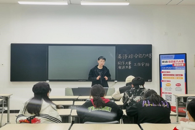 为深化高职高专英语教学改革,落实立德树人根本任务,推动“三进”工作纵深发展,推进有家国情怀、有全球视野、有专业本领的高水平国际化人才培养,为青年学子搭建理解中国、沟通世界的桥梁,提供深入思考、自信表达的平台,帮助学生增长见识、开拓视野、磨砺意志,成为时代需要、国家需要、行业需要的高素质“外国语”“中国心”人才,结合《学院技能竞赛三年行动计划》和“六个一行动计划”,人文社科系英语教研室依托英语第二课堂“蓝岛英”英语角于2023年11月14日下午6点在思学楼108开展了英语综合能力写作网络初赛的跟进及演讲网络初赛启动工作。