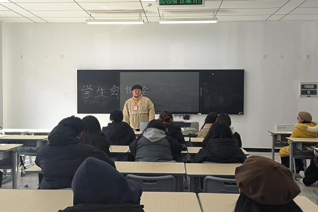 为加强和完善我系学生会学生干部队伍建设和管理工作,充分发挥全体学生干部在学生队伍与学校教师领导之间的桥梁纽带作用,提高思想素质高度,人文社科系学生会于2023年12月20日中午12:08在思学楼111开展了学生会例会,会议由学生会主席杨闪悦主持,出席此次会议的有学生会指导老师梁娟娟,以及人文社科系学生会全体成员。