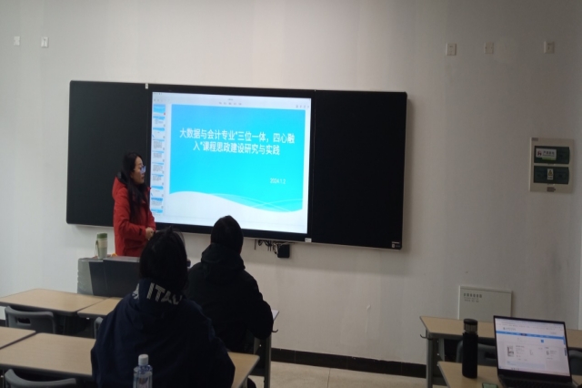 2024年1月2日下午,会计教研室全体教师在博学楼103开展本次教研活动,本次教研活动的主题为大数据与会计专业“三位一体,四心融入”课程思政建设研讨会,主讲人为薛蓓蓓。
