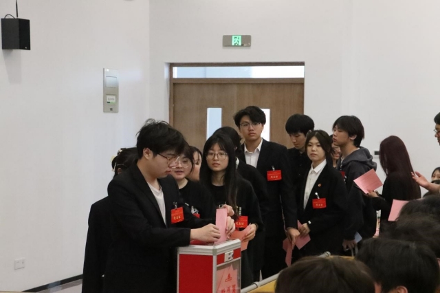 随后,大会进入选举阶段,由学生会副主席刘爽仡宣读选票办法公布大会总监票人、监票人名单,邀请校学生会观摩督导组成员致辞,与会代表有序进行投票。会议秉持着公平、公正、公开的原则,以无记名投票方式差额选举出葛子涵、张书雯、吴尚恒3名同学当选为亚搏在线人文社科系第五届学生代表大会委员会委员。