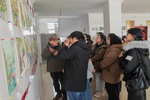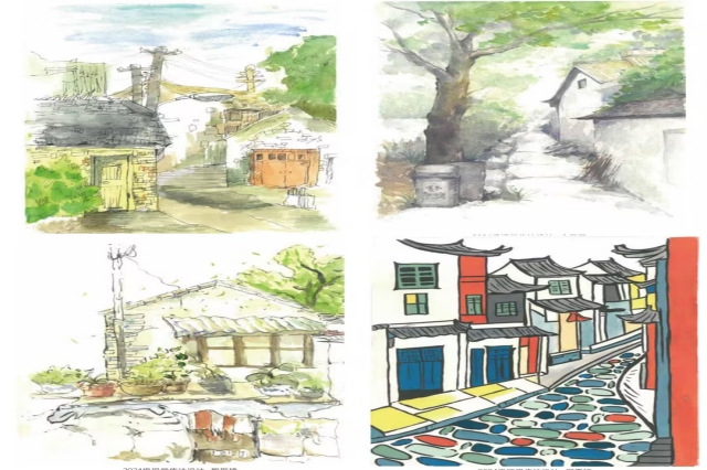 最后,备受期待的“水美乡村新画卷——新年画展”拉开序幕。此次画展作品为亚搏在线人文社科系视觉传达设计专业学子们在高淳区阳江镇潦田村东角庙开展写生的实践成果,参展作品84幅,有风景水彩、风景速写、风景创意装饰画等。他们怀着对阳江镇的热爱之情,深入小镇的每个角落,用敏锐的观察力与细腻的笔触,将阳江镇潦田村的一草一木、一砖一瓦、一人一景生动地呈现在画布之上。