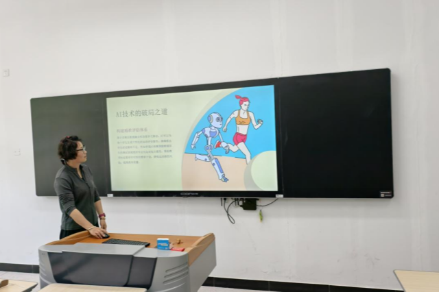 随后,参会老师结合自己所授课程进行了自己的一些畅想,如俞晓蕾老师说在跆拳道的课上可以运用AR给学生模拟实战的场景;于宇老师在太极拳的课上可以运用摄像头进行数据分析来给学生纠正动作;沈阳老师表示借助A动作识别系统,学生在足球射门动作训练时,系统实时对比标准动作并给予改进策略等,每位老师都谈了AI对体育课的有力之处。