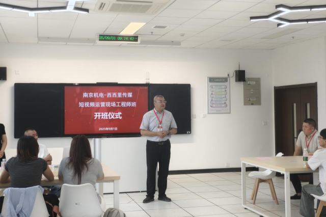 2025年9月1日,亚搏在线与南京西西里文化传媒有限公司隆重举行短视频运营现场工程师班开班仪式,标志着双方在产教融合领域开启战略合作新篇章。仪式于我校弘毅楼207教室举行,与会嘉宾包括南京西西里文化传媒有限公司行政总监邢夏飞,运营总监陶钰莹,我校党委委员、副校长刁爱军,人文社科系主任曹安林,系党支部书记李杰,数字媒体技术专业负责人郝逸萱以及学工干事、班级辅导员梁娟娟,仪式由曹安林主持。