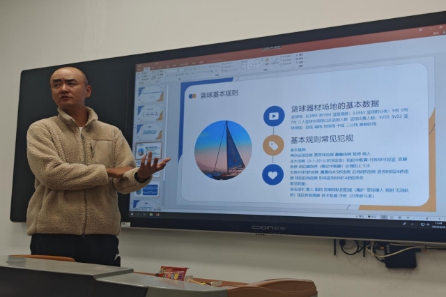 随后,许老师讲述了自己在授课过程中通过篮球比赛规则的讲解对学生学习带来的好处。篮球课上学习的知识最终是为了进行篮球比赛做准备,作为对抗竞技类体育项目,只有掌握好篮球规则才能在篮球学习和比赛中有更好的发挥,更好地运用技术动作,才能更有效地取得比赛的胜利。