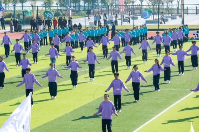 精彩纷呈的团体表演轮番上演。活力四射的啦啦操、刚柔并济的武术表演、技巧精湛的跳绳表演以及整齐划一的广播操表演,赢得了现场师生的阵阵掌声。这些表演不仅展现了同学们的青春风采,更生动诠释了“传承体育精神,弘扬传统文化”的运动会主题。本届运动会是学校深化“五育并举”育人实践的生动体现。赛事不仅锤炼了学生的体魄与意志,更通过体育竞技的仪式感、团队协作的凝聚力以及传统文化表演的艺术美感,实现了以体育德、以体启智、以体润心、以体育美的综合成效,为培养德智体美劳全面发展的新时代工匠人才注入了蓬勃动力。