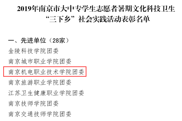 2019年,市委宣传部、市文明办、市教育局、团市委、市学联组织开展了全市大中专学生志愿者暑期文化科技卫生“三下乡”社会实践活动,以“青春心向党·建功新时代”为主题,从理论普及、历史成就、依法治国、科技支农、教育关爱、文化艺术、爱心医疗、美丽中国、助力高质量、启航新时代等多个类别按需设项、据项组团。为表彰先进、树立典型,进一步推进社会实践活动持续深入开展,经学校推荐、材料审核和专家评审等环节,市委宣传部、市文明办、市教育局、团市委、市学联决定授予亚搏在线团委先进单位,授予亚搏在线艺传天下、红色竹镇追忆革命社会实践团队优秀团队,授予亚搏在线机械工程系孙晓燕同志、人文社科系杨辰辰同志先进工作者。