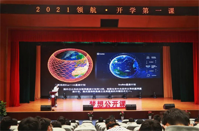 闻教授以人类飞天之旅为主题,带领同学们探索航空航天的新领域。汪博士从空天地融合网络时代、激光通信在融合网络时代的角色、国内外轻小型激光通信技术发展动态等三个方面向同学们介绍了轻小型卫星激光通信技术。