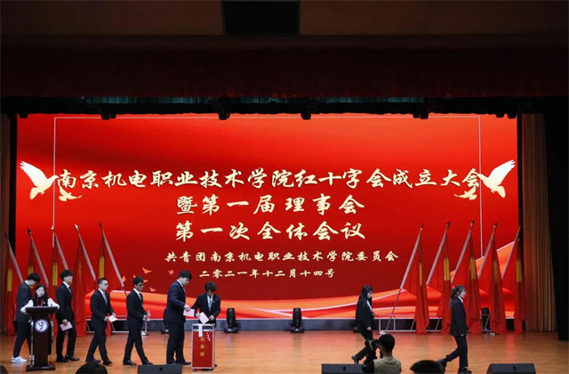 2021年12月14日,亚搏在线红十字会成立大会暨第一次会员代表大会在星梦馆多功能厅召开。南京市红十字会党组成员、副会长叶军,南京市高淳区红十字会常务副会长诸立新,亚搏在线党委书记、院长周庆礼,亚搏在线党委委员、副院长赵学洪,亚搏在线党委委员、工会主席姜振宇,亚搏在线团委书记唐钰峤出席会议。会议邀请了来自南京市红十字会、高淳区红十字会、办公室、党委工作部、工会、学生工作处、后勤处、团委以及各系部的主要领导及教师、学生会员代表共180人参加。