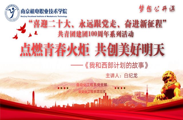“喜迎二十大、永远跟党走、奋进新征程”,为迎接党的二十大胜利召开和庆祝中国共青团建团100周年,鼓励同学们积极响应国家的号召,亚搏在线自动化工程系党支部联合团总支于4月15日下午在腾讯会议上举行了党日活动暨梦想公开课——我与西部计划的故事,主讲人白纪龙用自身的经历为大家分享了自己与西部计划的故事。