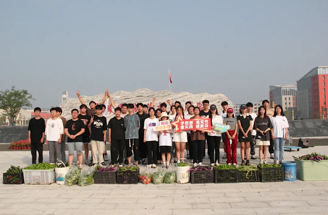 劳动教育是“德、智、体、美、劳”一体化教育的重要方法。同学们跟随队伍抵达实践基地,在领取工具后,领队老师向同学们分配采摘瓜果蔬菜等任务。