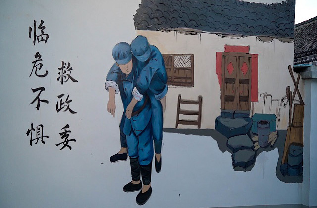 实践过程中团队积极进行实地调研,与跃进村芮书记进行访谈,深入了解“红色堡垒”,同时也探访当地村民、讲解员寻求建议,并在采访结束后及时调整墙绘构思。经过七余天的共同努力,墙绘任务圆满结束。此次社会实践,我们让美丽乡镇与艺术相遇,用艺术为乡村振兴注入新的活力,不仅提高了团队成员的专业应用能力,还增强了他们对社会服务的责任感和使命感,激励他们以青春的姿态为乡村振兴的舞台而奋斗。