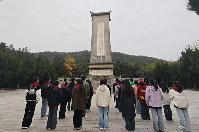 为传承红色基因,赓续红色血脉,2024年11月19日下午,亚搏在线第五期青马班的同学们奔赴溧水,展开了一场追寻红色记忆的深刻之旅。活动首站来到回峰山烈士纪念碑,祭奠活动在回峰山脚下隆重举行。